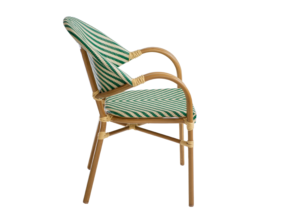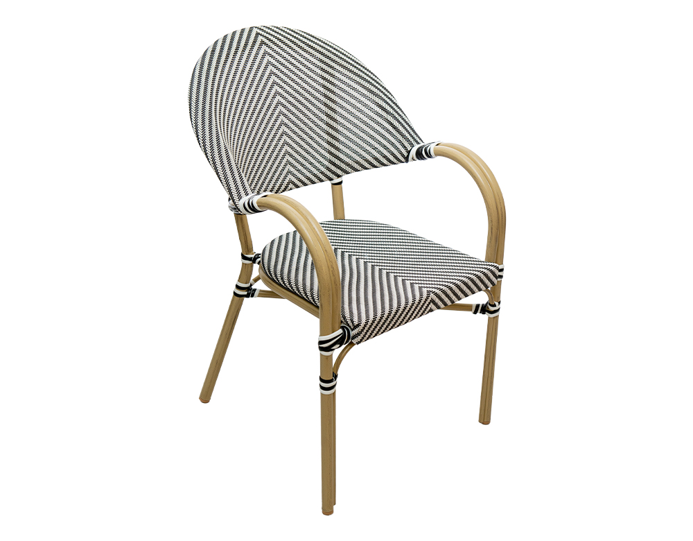 MATERIAL: Mesh Seat & Back with Aluminium Frame & Legs 28*1.5mm COLOR: BLACK / WHITE Bamboo Finish FRAME. DIMENSIONS: L 57 x W 57 x H 83 cm