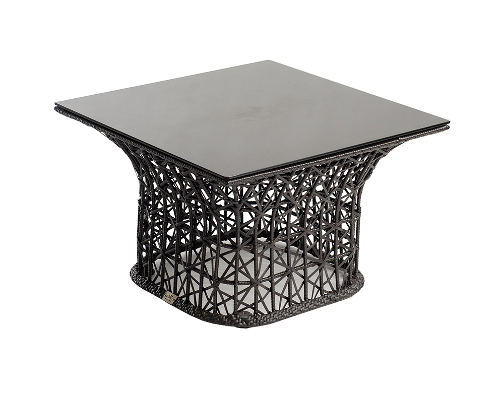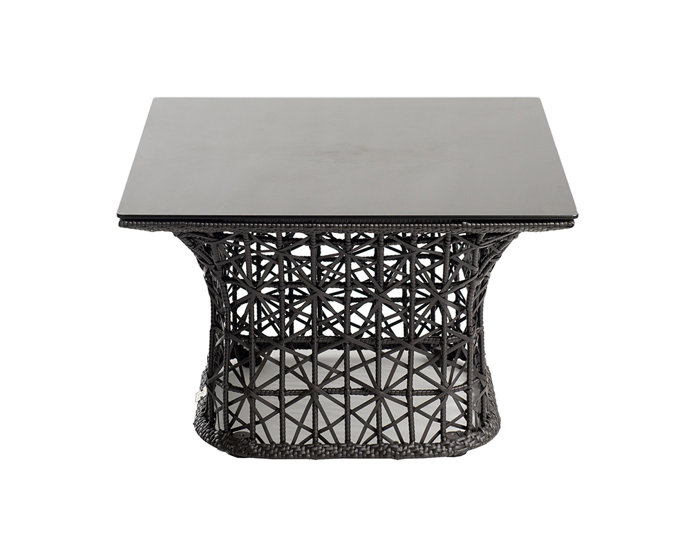 MATERIAL: Aluminum Powder Coated Frame Weaved in Synthetic Rattan + Tempered Glass Top COLOR: DARK BROWN DIMENSION: W63 X D63 X H42 cm