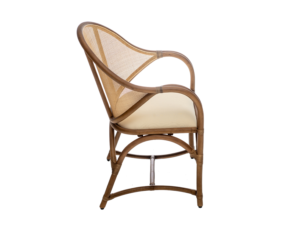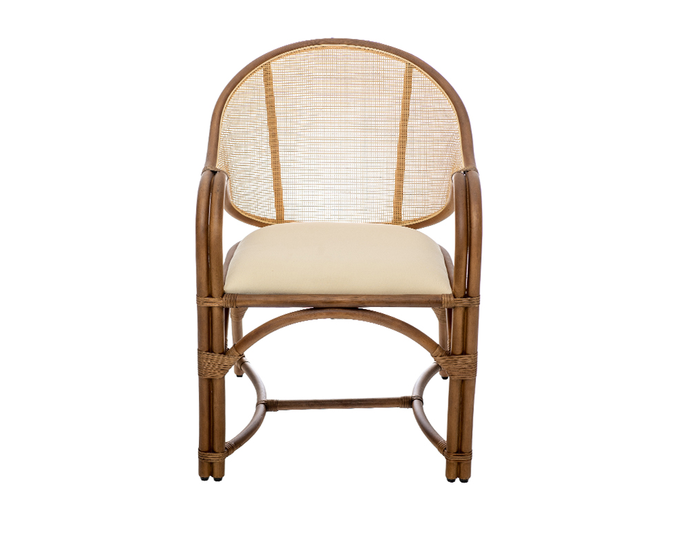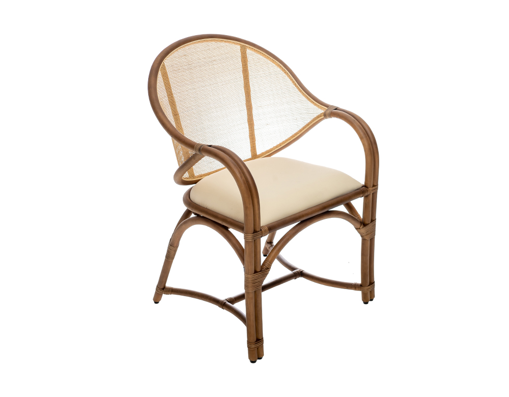 MATERIAL: PU Seat with Rattan Mesh Back in Bamboo Wood Frame COLOR: Natural / Beige DIMENSIONS: L 60 x W 60 x H 87 cm